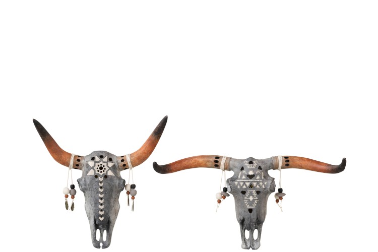 Cráneo Decorado con Tatuajes y Borlas XL