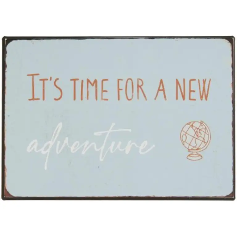 Cartel de metal rectangular para colgar con el texto “It’s Time for a New Adventure”: perfecta para colgar en tu hogar en una pared para decorar poniendo varias placas de este tipo.