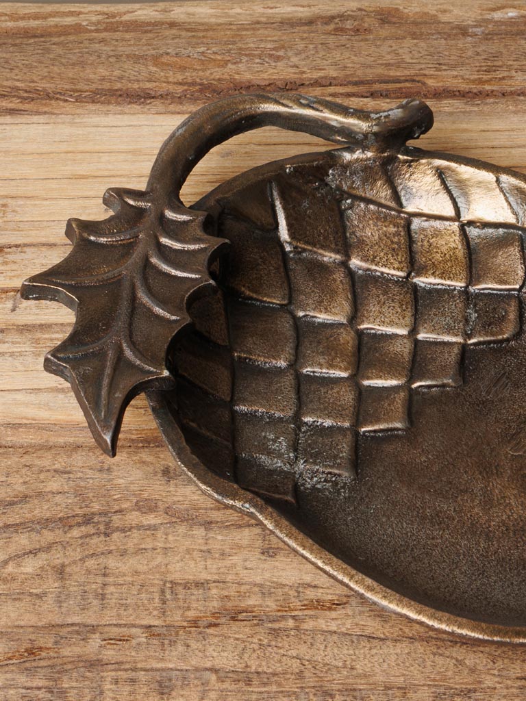 Vacíabolsillos de aluminio con acabado envejecido en forma de bellota.