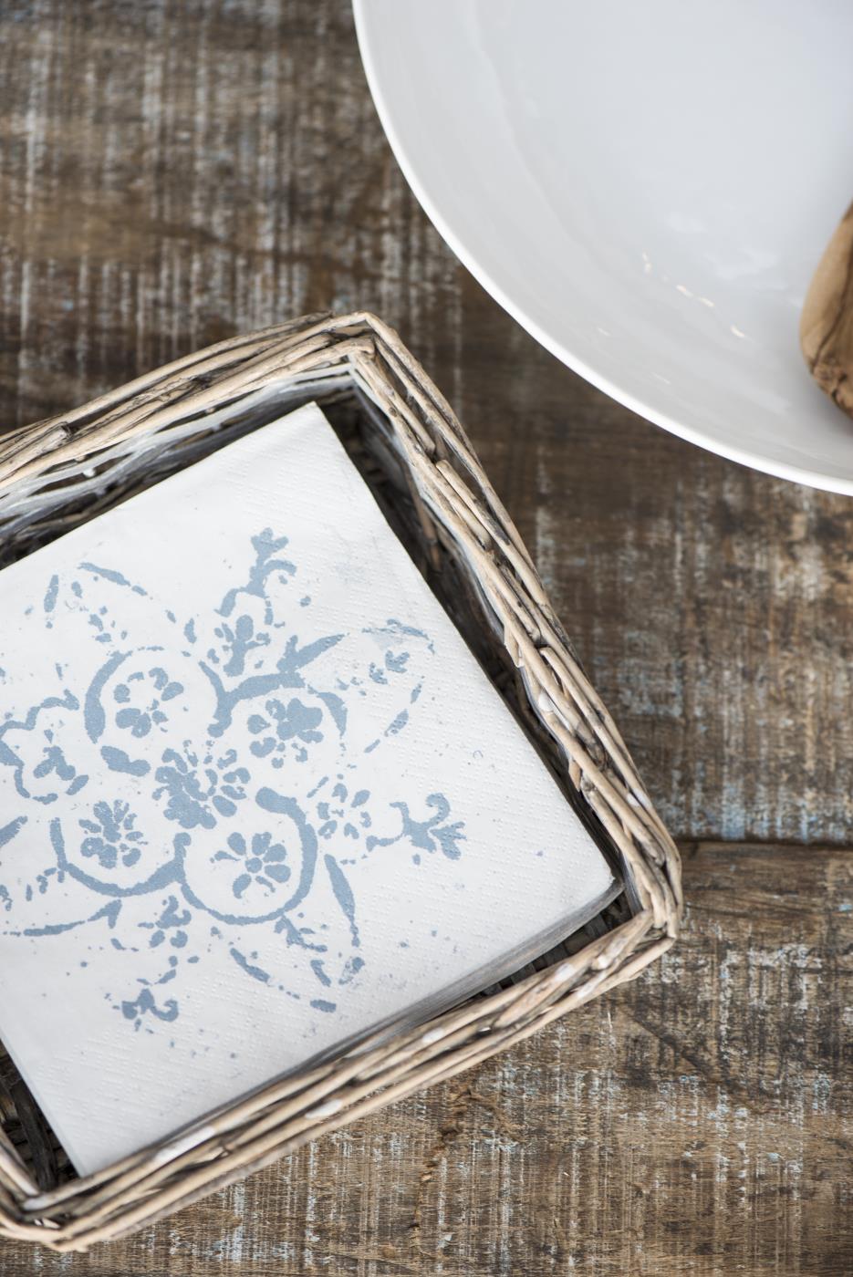 Servilletero de mimbre para servilletas de papel: un detalle rústico-chic para tu mesa de verano.