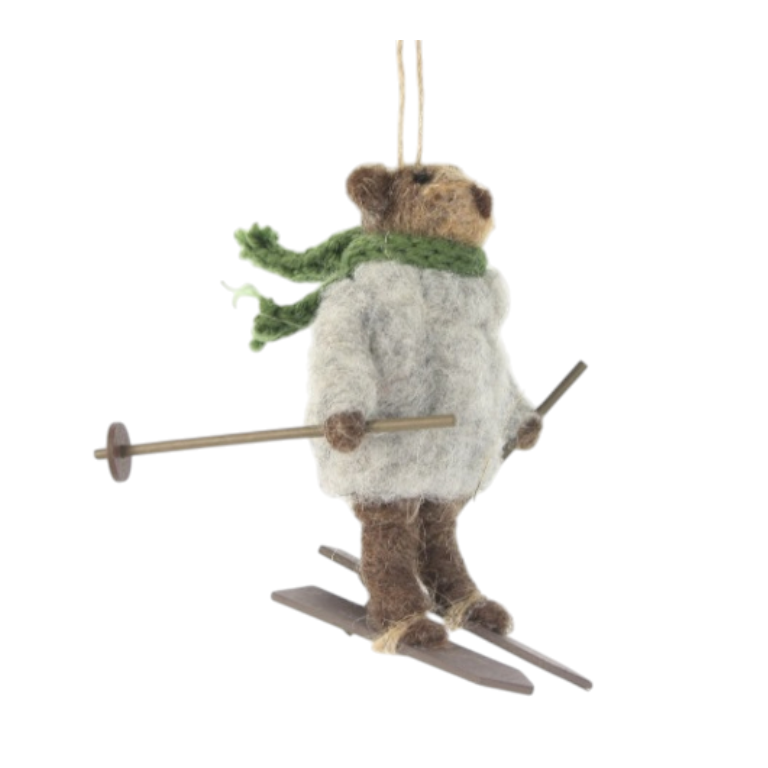 Oso Esquiador Fieltro c/Chaqueta Gris
