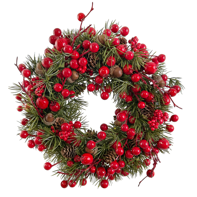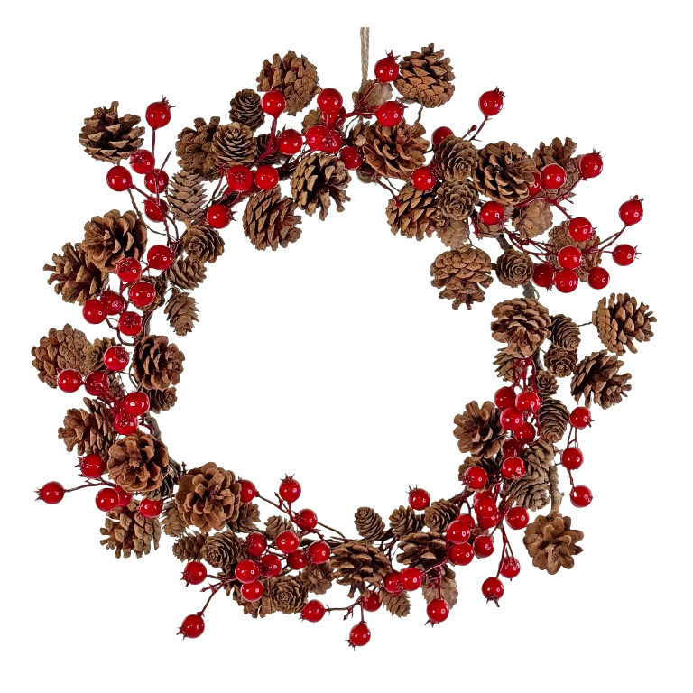 Corona Piñas y Bayas Rojas – Ø45 cm