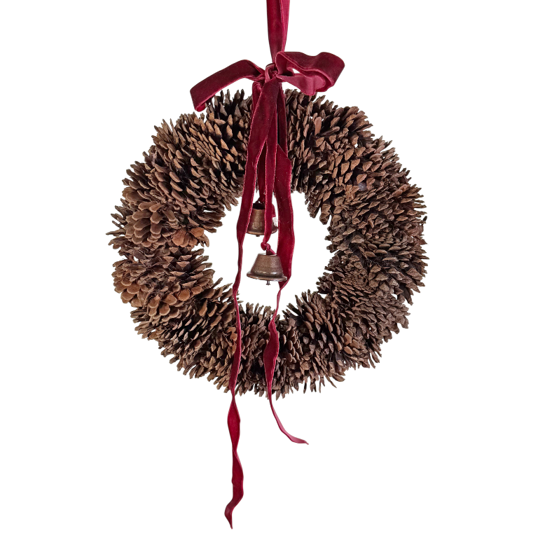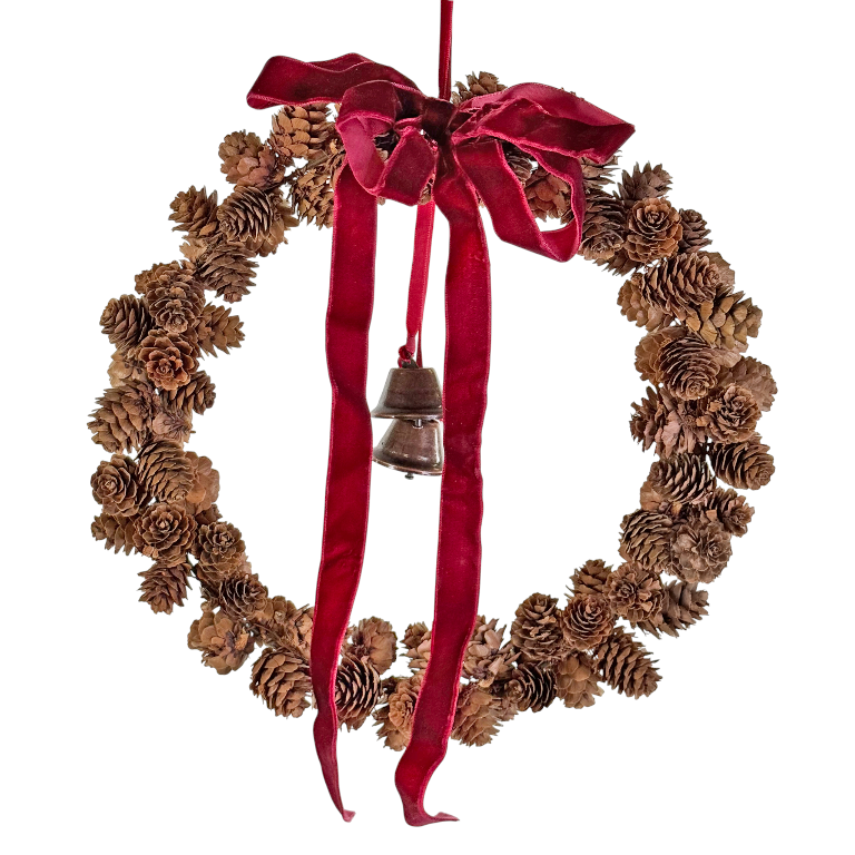 Corona de Piñas Larix c/Lazo y Campanillas – Ø30 cm